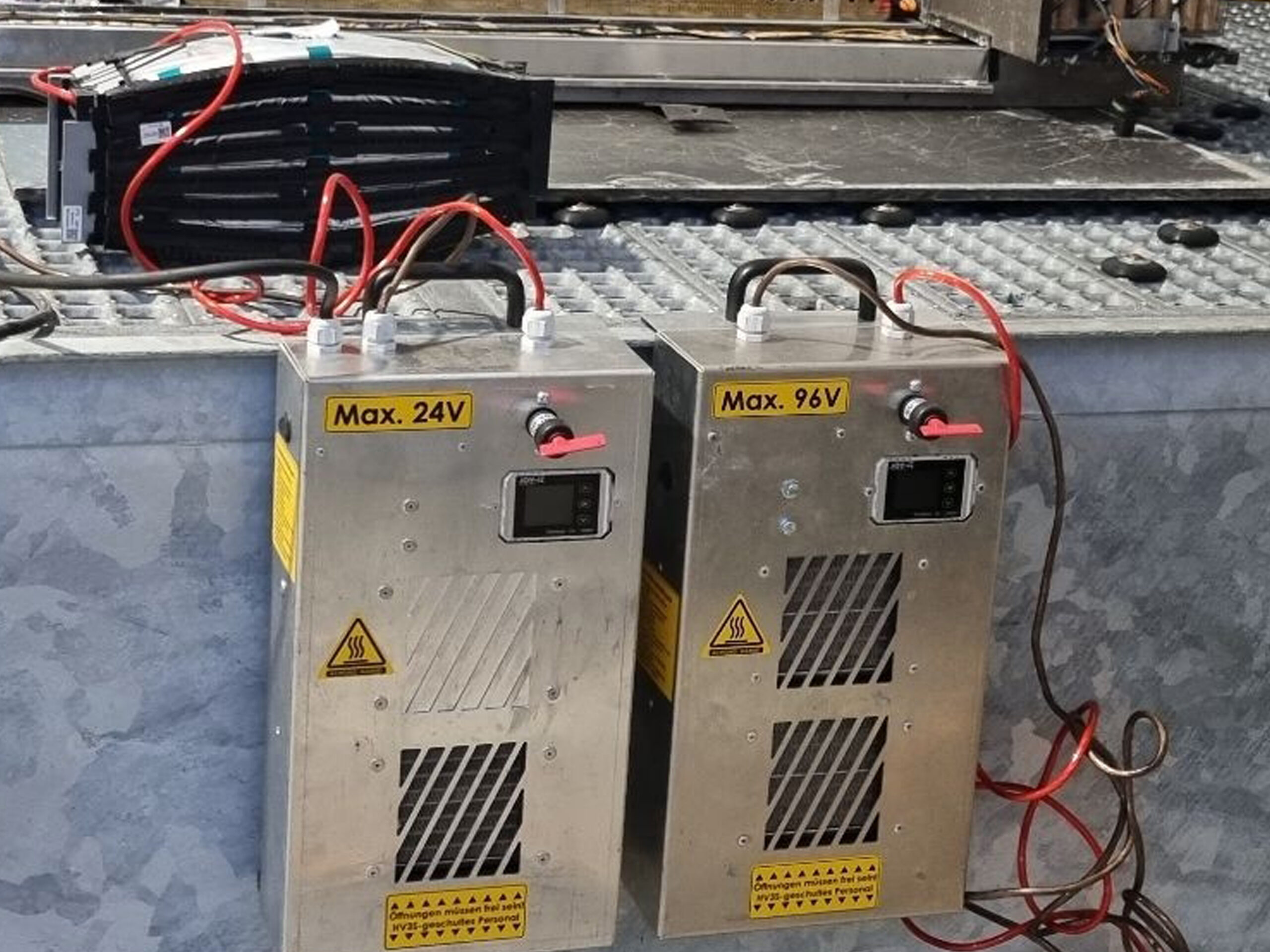 Modules up to 96V can be discharged with a power of up to 4.8 kW. After deep discharge, the battery modules are short-circuited. Following a 72-hour quarantine and observation period, an HV technician inspects the module for any thermal anomalies to classify it as non-critical. This process lowers transportation costs since ADR transport can now be conducted with non-critical batteries. Storage is also easier to manage.