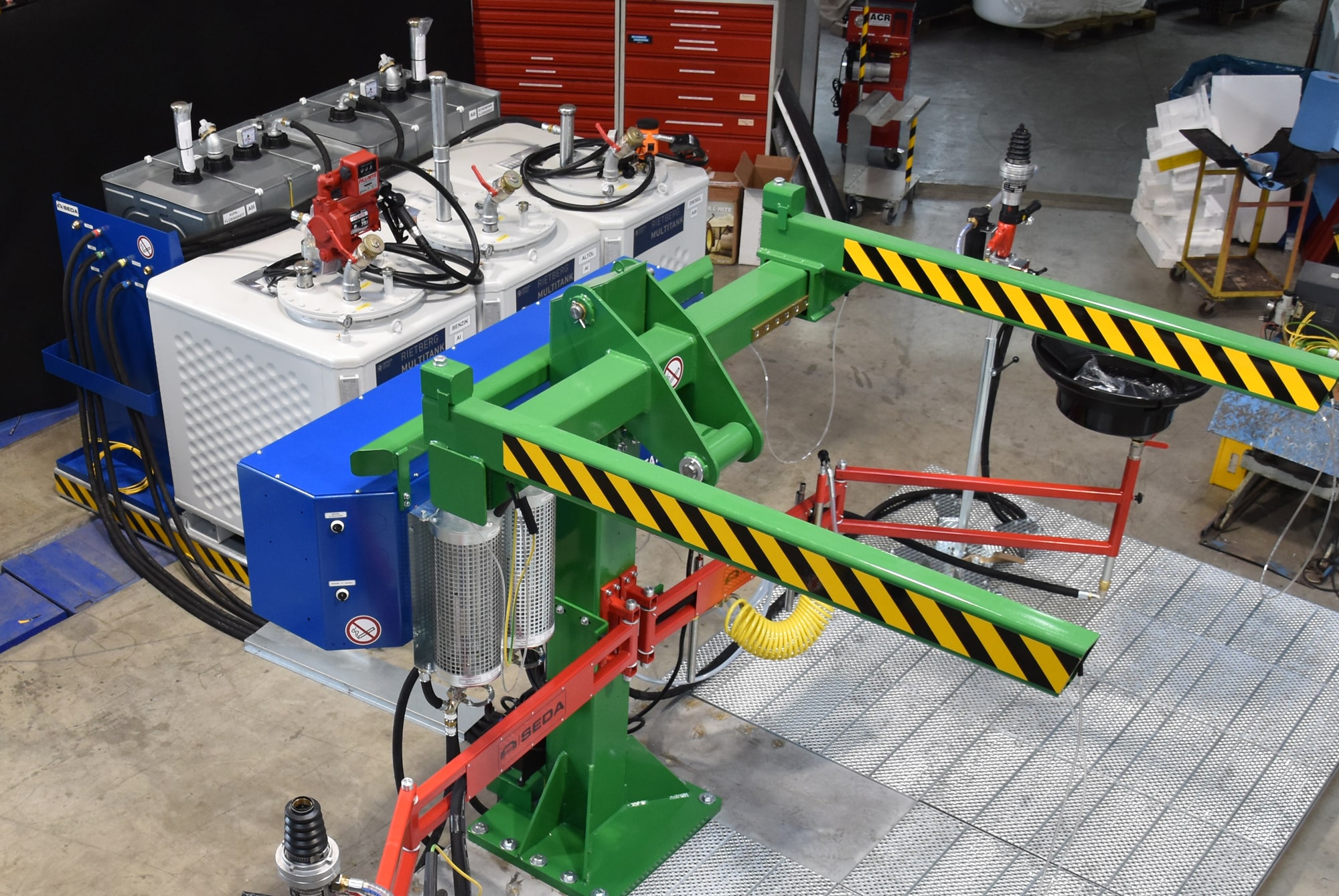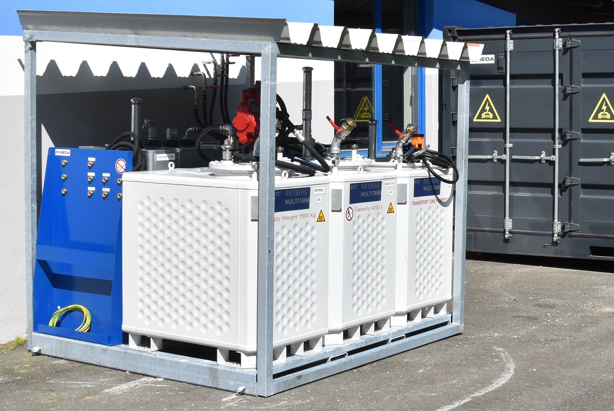 The key advantage of this system lies in its mobility: a specially designed forklift attachment enables the platform to be effortlessly relocated to different sites. With this SEDA solution, the storage of fluids becomes efficient and professional.