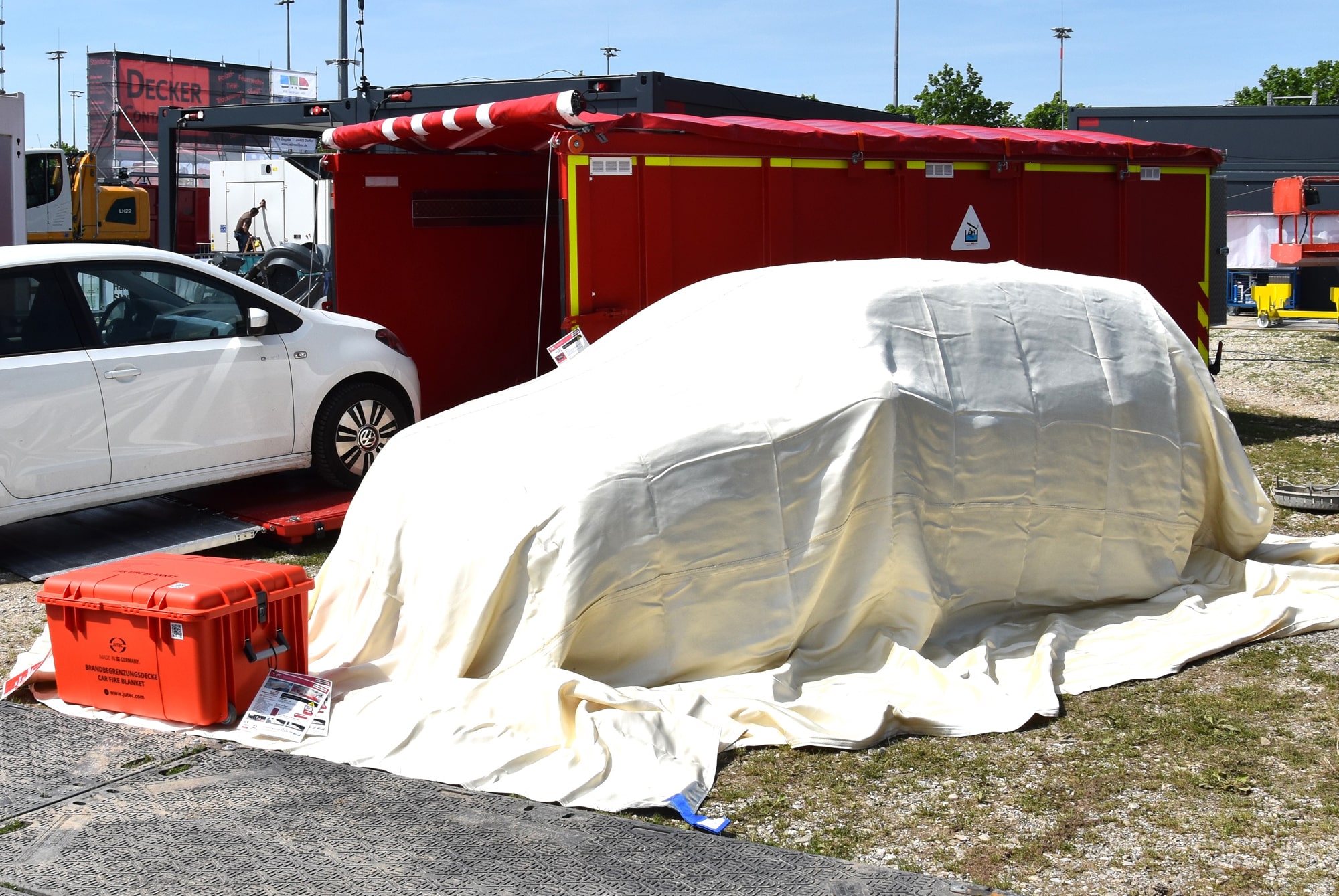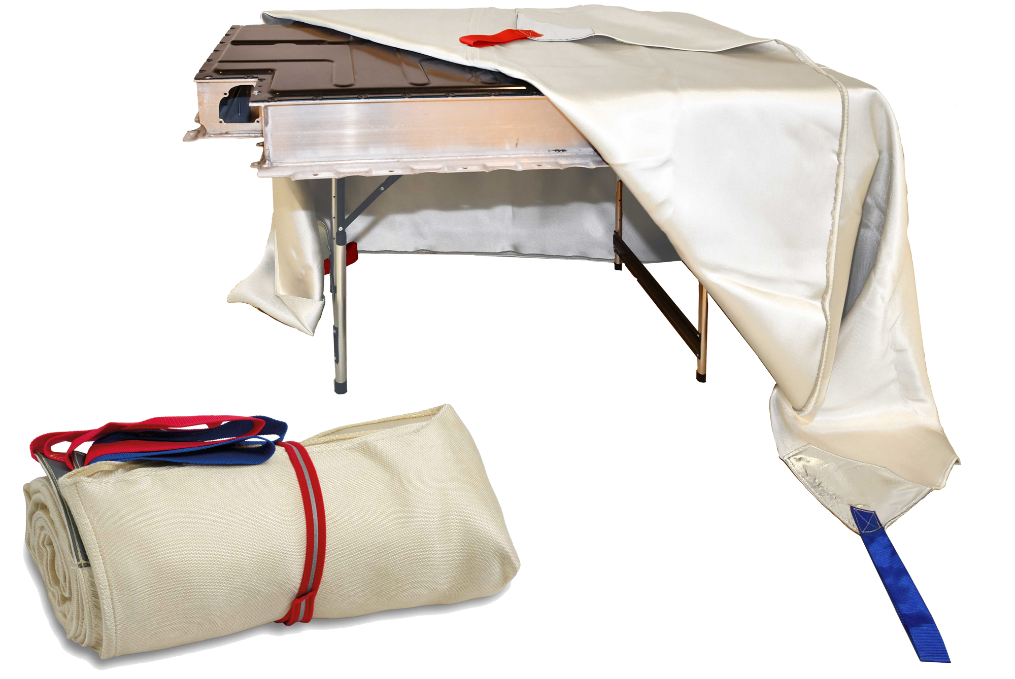 Bei der Havarie eines Akkus oder E-Autos bieten nur die hochwertigsten Spezialgewebe ausreichenden Brandbegrenzungs und Hitzeschutz für die bestmögliche Verlängerung der Hilfsfrist.