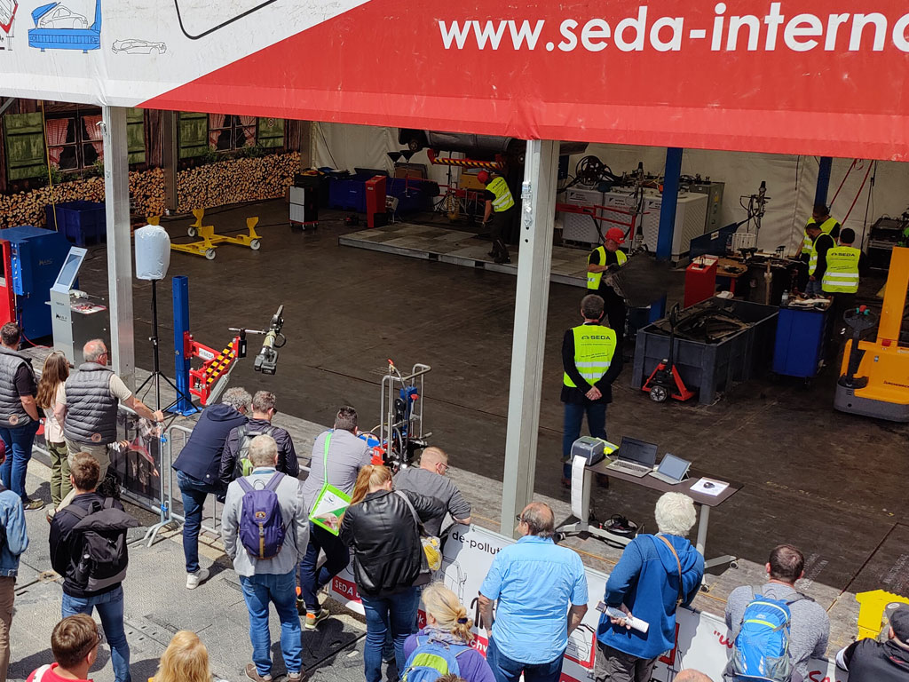 SEDA Umwelttechnik GmbH – the global market leader in car recycling technologies, together with BDSV (the Confederation of German Steel Recycling and Waste Management Companies) carried out a perfect showcase of car and e-car recycling at IFAT 2022. International visitors and professionals from all over the world could experience the entire recycling process performed live on the exhibition area of 3,586 m². SEDA went so far as 3 times a day to demonstrate the complex 7-stage car recycling process on seven spots within the booth. To polish the visitor’s practical skills, SEDA provided exhaustive information encompassing the current and related innovative processes as well as handling of ELVs. The industry gurus and SEDA expert team answered numerous questions and provided new solutions for recycling companies.