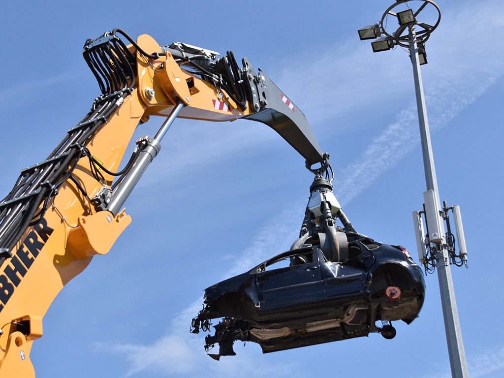 Various further processing steps are shown below. If the parts are suitable for sale, their photos should be uploaded on the internet (80-90% of the used parts are successfully traded via the internet). Shredding of car parts and clean separation of shredded raw materials into categories is very urgent today, as a substantial profit is gained due to high prices of raw materials. In the exhibitor’s area we will show other related devices and systems: With the help of Liebherr LH 30 M, a mobile 30 ton truck, the carcass is loaded into the scrap press. The LH is equipped with a Zato Cayman 2, FCE30R scrap shears. This compact 3rd class scrap shear works with a power of 580 t. It perfectly suits for cutting large trucks and their frames. ZATO especially designs and produces compatible shears for scrap and metal recycling with an installed weight of 1-9 tons. It is the market leader also for heavy-duty rotary shears, shredder systems, sorting systems and cleaning systems for scrap and metal processing. VENETO Schwenter represents ZATO and also sells M&J 4000 mobile shredder for wood, waste, aluminum and the like, which is on display here. In addition, VENETO Schwenter trades the whole range of equipment for recycling companies. Finally, a magnet is used to pick up SkanCraft. The company called Decker Containerbau, based in St. Wolfgang – 40 km from here in the heart of Bavaria, produces containers in all variations and designs that definitely meet high demands of most scrap yards.