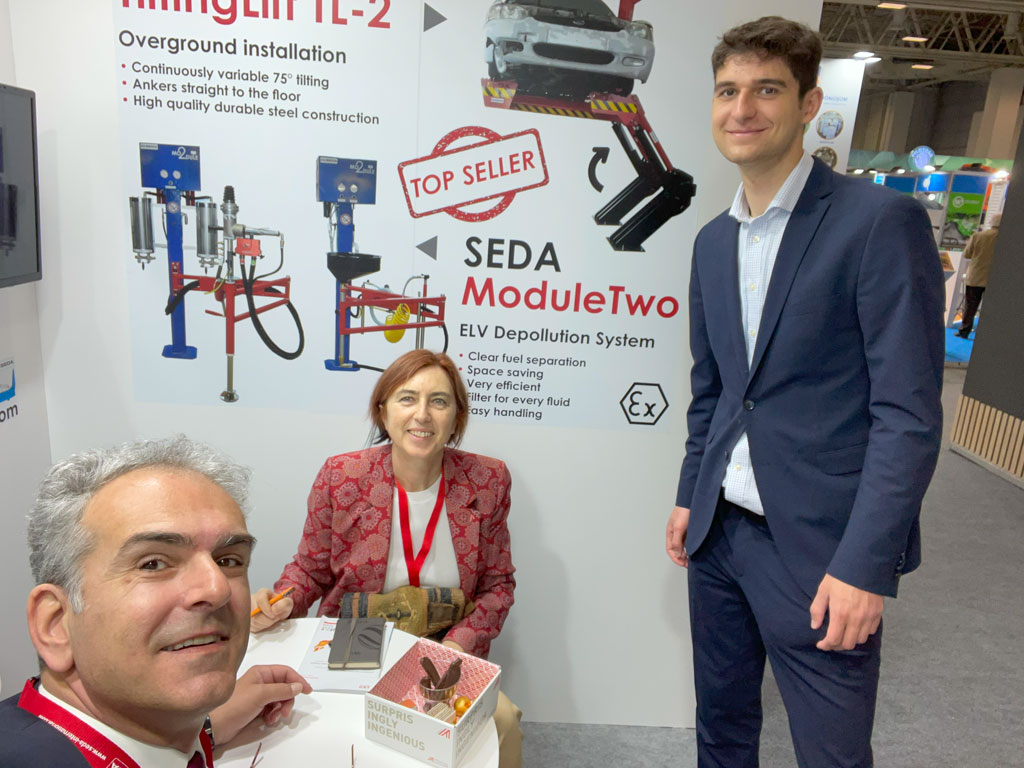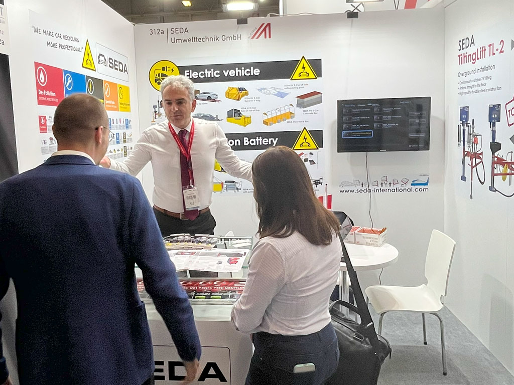After the Covid-19 pandemic, IFAT Eurasia reopened its doors to those interested in environmental technologies between 27 and 29 April 2023. The event was held at the TÜYAP grounds in Beylikdüzü – Istanbul. Among the 145 brands represented by 106 companies, SEDA Umwelttechnik GmbH was also present at the joint booth of the Chamber of Commerce Austria WKÖ. Although the fair was only attended by around 9,300 visitors in terms of quantity, including around 1,000 international visitors, due to the post-pandemic, the quality of the visitors was very high. SEDA was visited by Turkish recyclers as well as by companies from neighbouring countries. We had interesting discussions about end-of-life vehicle recycling. In particular, our products for dismantling electric cars were in the spotlight.