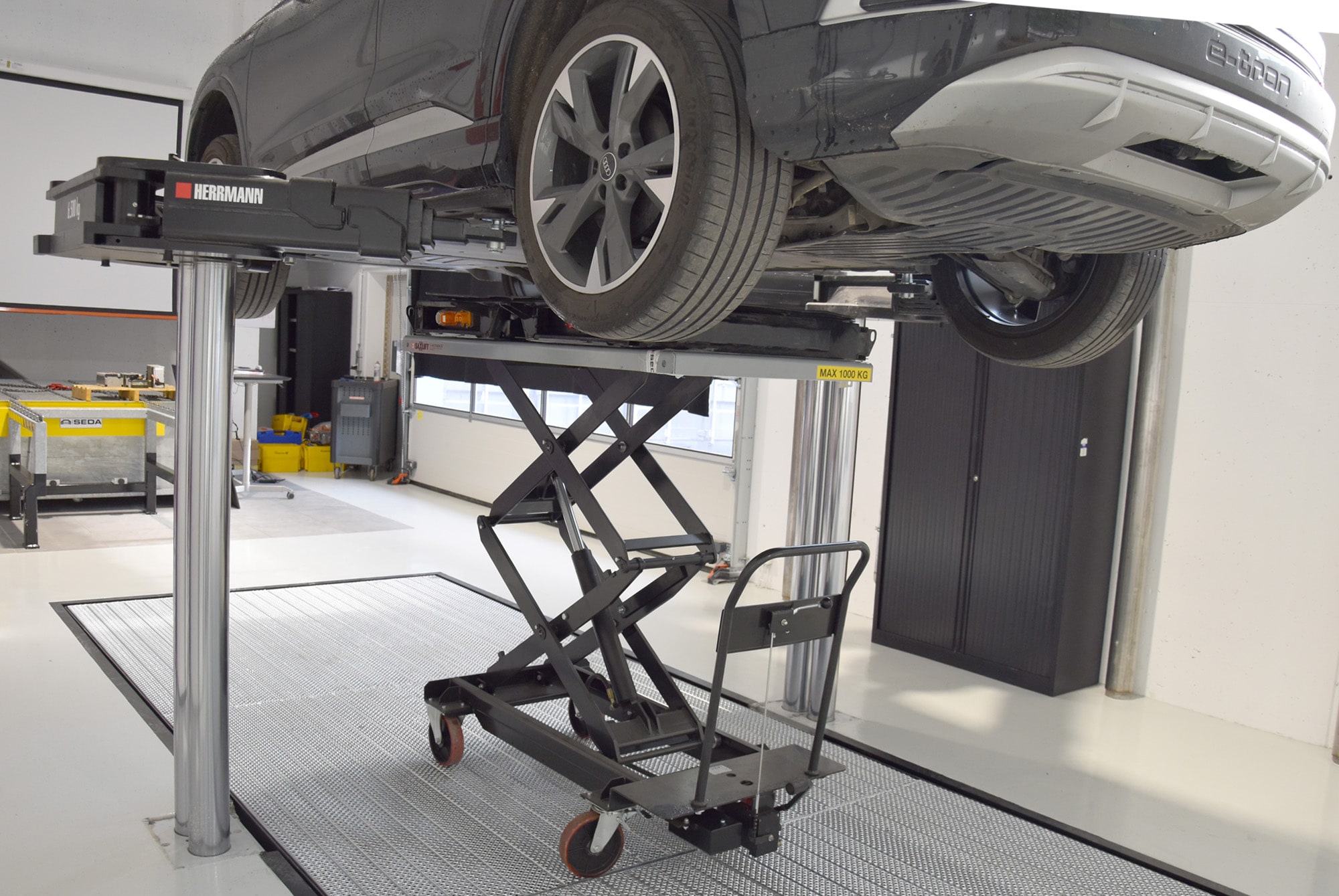 SEDA In-Ground Lifts are specially designed for work on electric and hybrid vehicles. Thanks to the ‘swing arms’, the platform takes up as little space as possible to allow unhindered work on the vehicle.