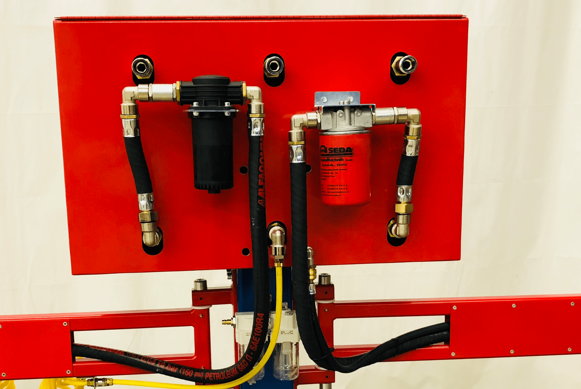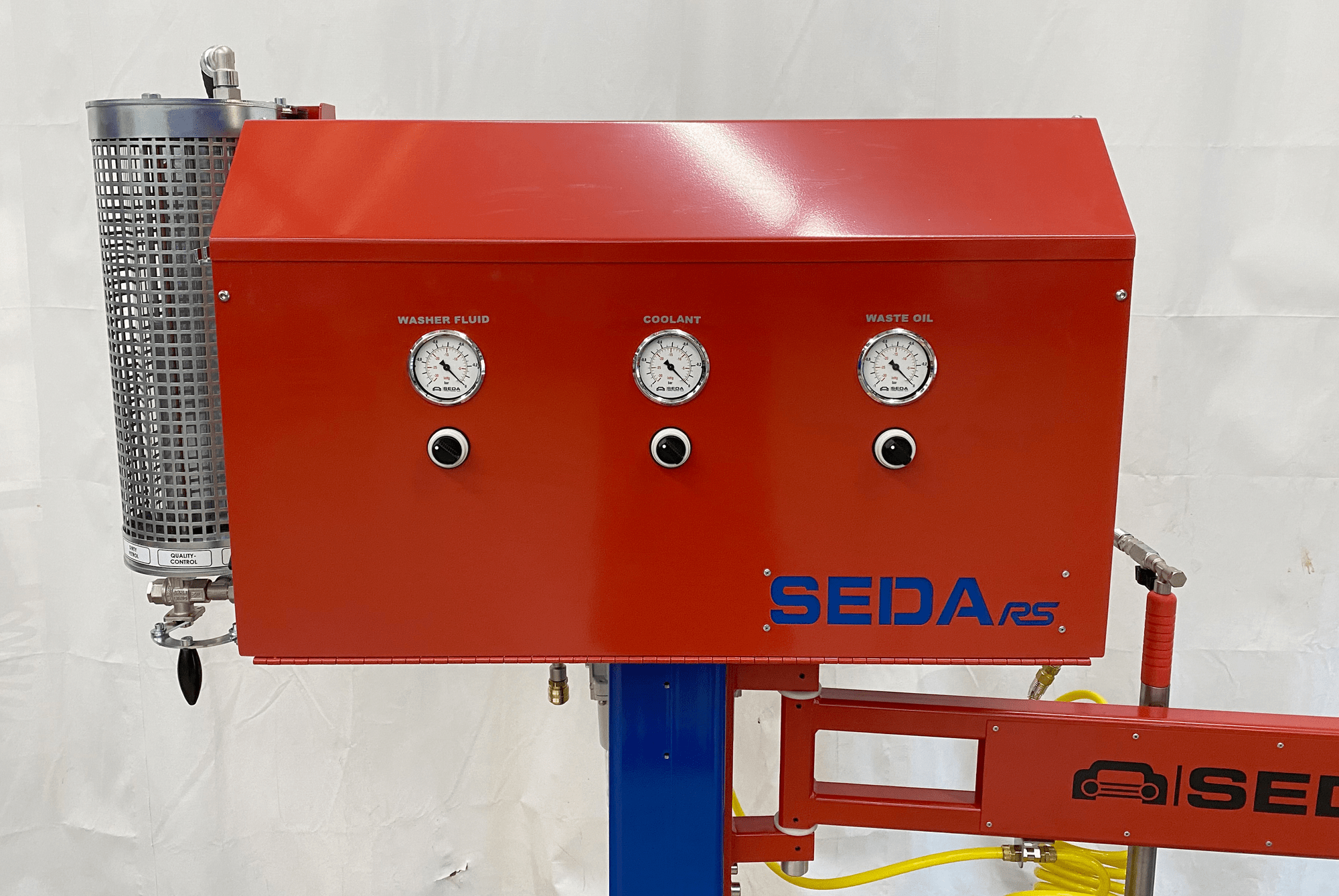 The SEDA RS is fully powder coated and comes with fuel and oil filters on the back for easy access, this system removes fuel, waste oils and antifreeze but can also be configured to remove wiper fluid and comes standard with an air processing unit (air oiler and dehumidifier) on the back. Both double oil funnels and HD fuel drill come on swing arms as standard to maximize ease of use.