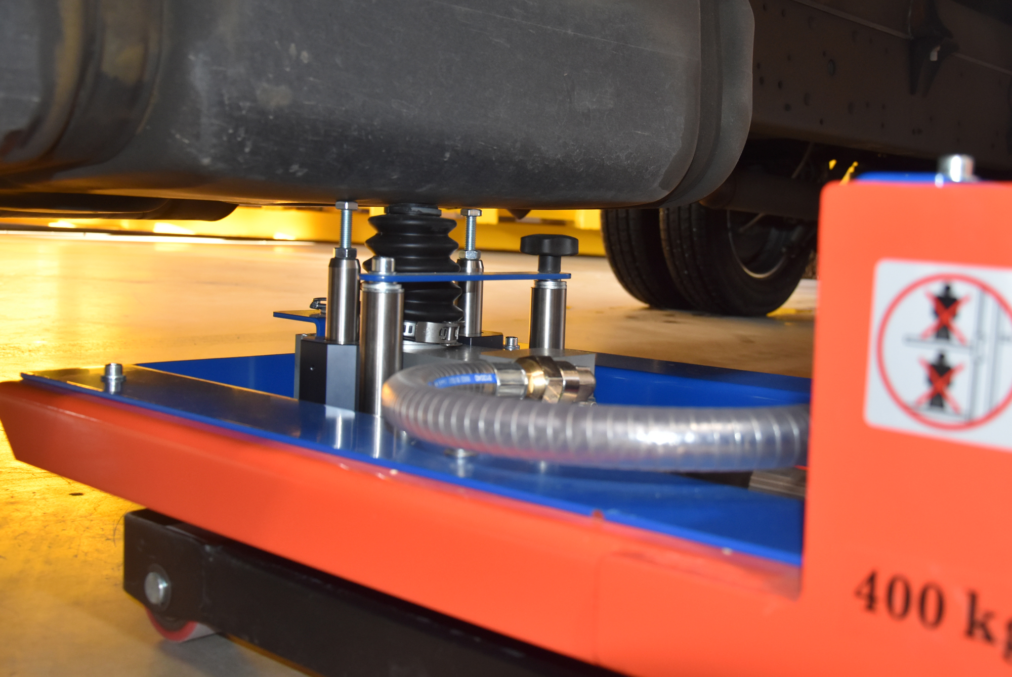 To efficiently drain diesel, used oil, and other fluids from trucks without the need for lifting platforms, the SEDA Truckstation ED-G was developed.